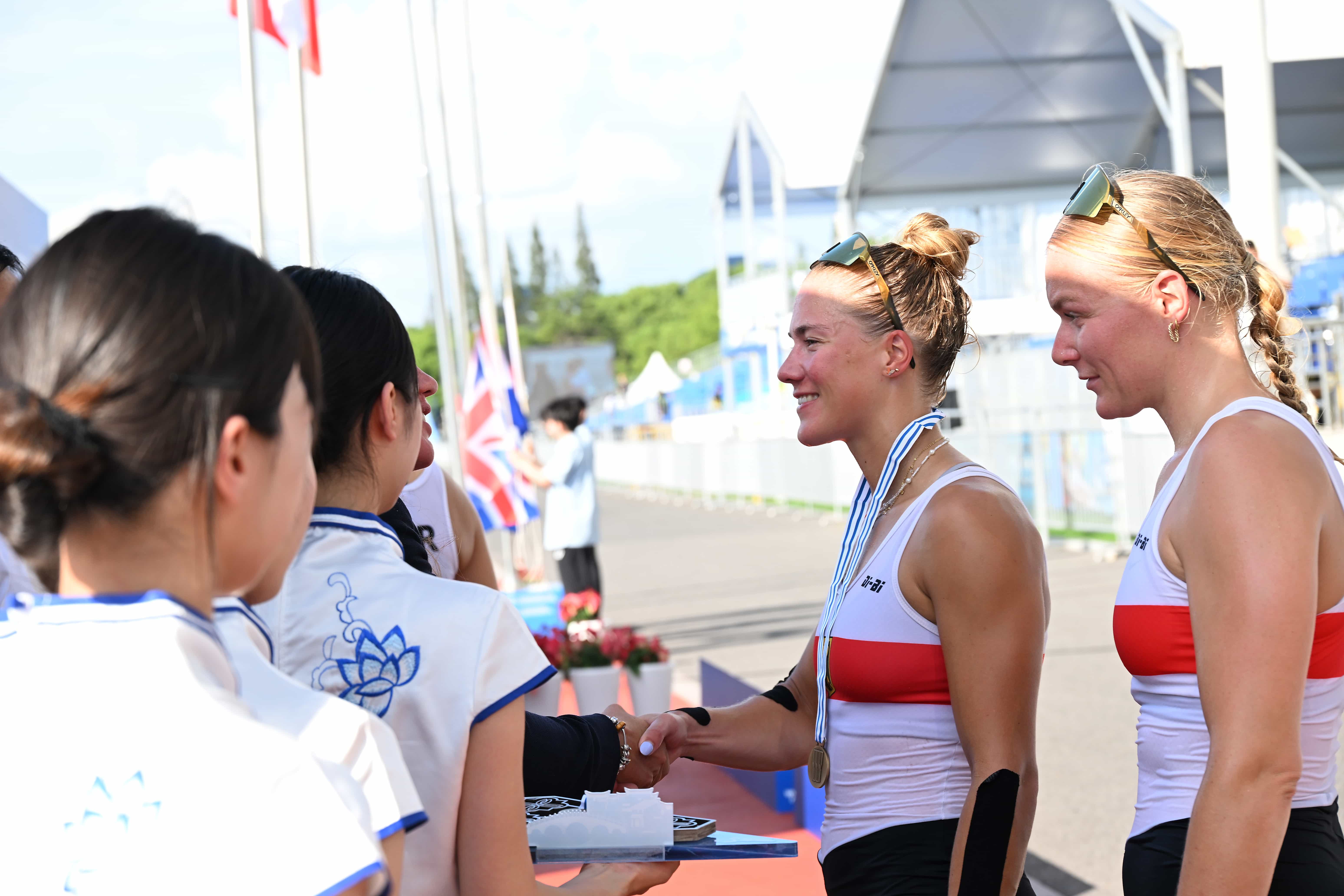 Mit einem strahlenden Lächeln nahmen sie ihre Medaillen entgegen: Pia Greiten, Lisa Gutfleisch, Frauke Hundeling und Sarah Wibberenz gewannen bei der WM in Shanghai Bronze. Für alle ist es die erste Medaille überhaupt bei einer A-Weltmeisterschaft, für Pia Greiten nach Olympia-Bronze in Paris die zweite bei einem Ruder-Großereignis. Die Saison endete für das Quartett, das schon EM-Silber in Plovdiv gewann, so wie sie begann: mit Edelmetall.
