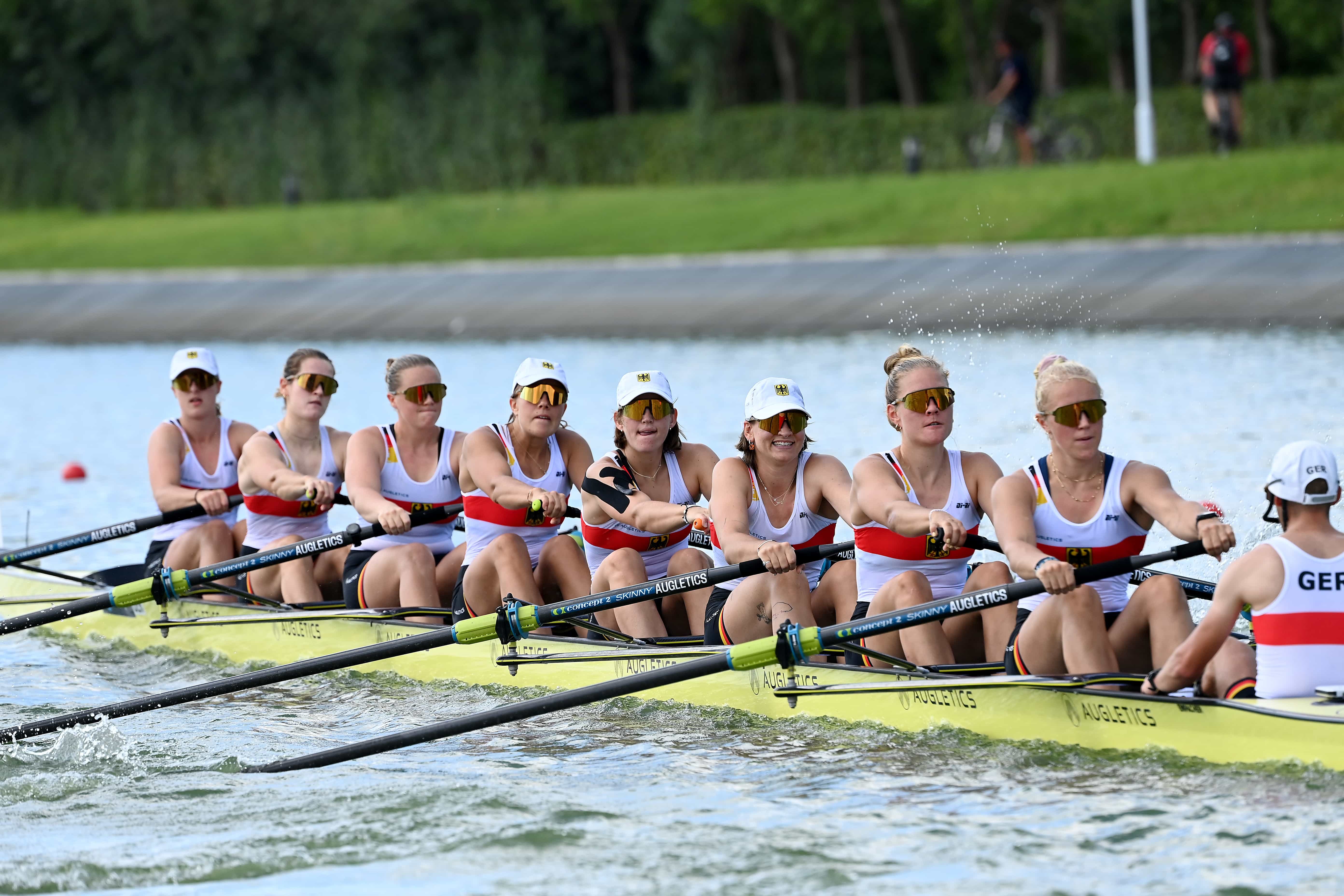 „Ich bin sehr stolz auf uns. Wir wären gerne um mehr gefahren, haben aber alles auf dem See gelassen und können sehr zufrieden sein“, sagte Schlagfrau Greiten und Lisa Gutfleisch ergänzte: „Wir mussten uns die Medaille hart erarbeiten, es war kein leichtes Spiel. Darauf können wir alle stolz sein.“