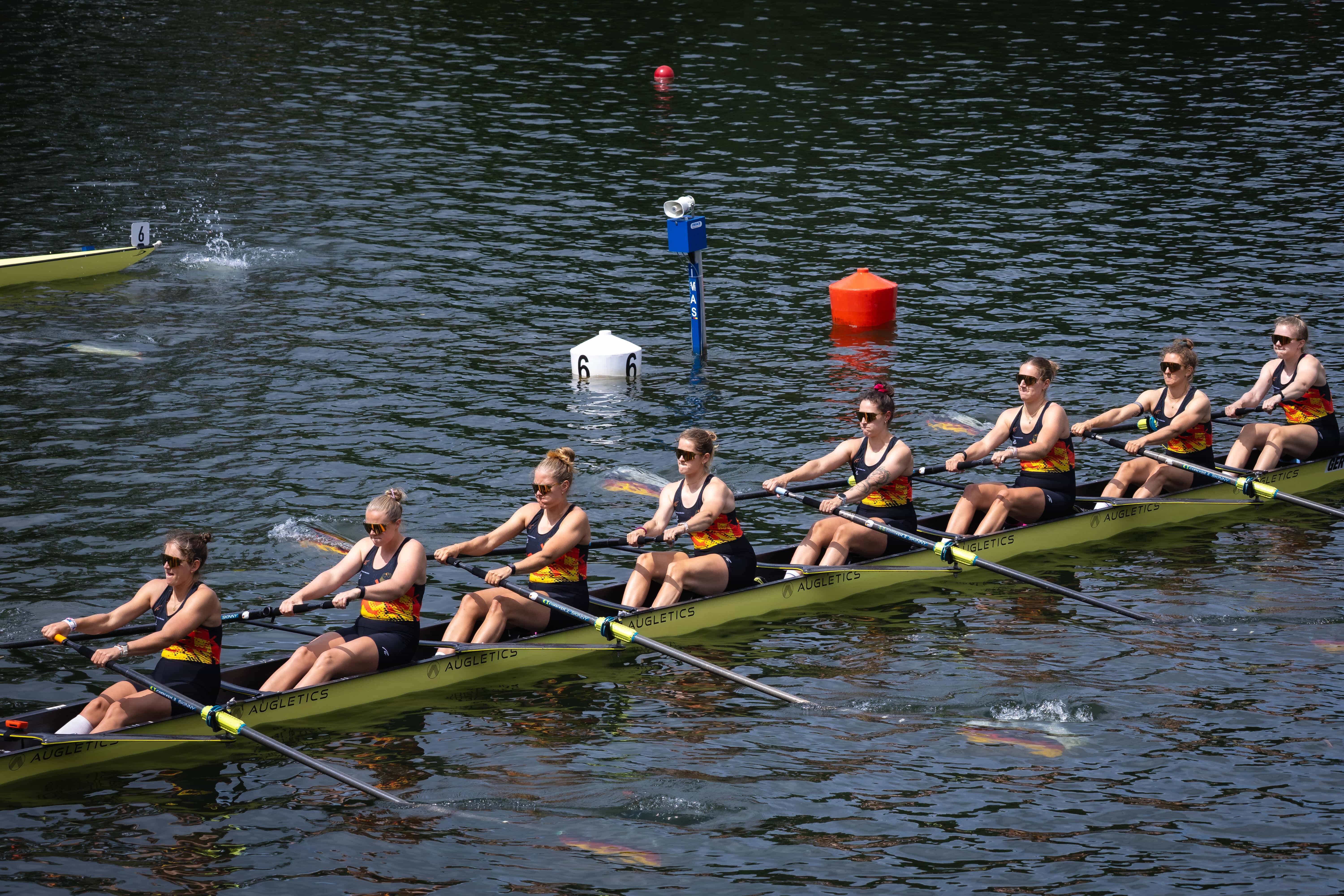 Für das Achter-Finale, das nur eineinhalb Stunden später ausgefahren wurde, musste dann allerdings USA-Studentin Luise Bachmann passen. Der Ausfall wog schwer. Schließlich verpasste der Achter mit Lene Mührs, Olivia Clotten, Tabea Kuhnert, Paula Hartmann, Marlin van der Aue, Paula Gerundt, Katharina Bauer, Judith Guhse und Steuermann Florian Koch nur knapp die erhoffte Medaille und wurde Vierter.